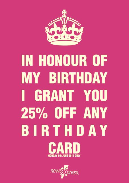 We are leveraging the ridiculousness of celebrating the Queen’s Birthday on a date that is not her birthday with this proclaimed special offer on birthday cards. It’s different, fun and on point for today.
