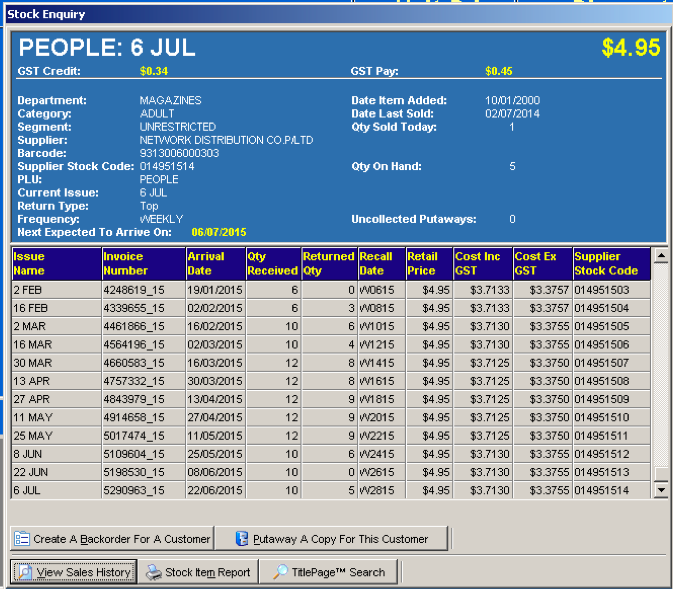 Check out the supply of Bauer Media’s People magazine to a newsagent from this screenshot from their newsagency software. Supply adjustments with no apparent regard for the performance data for the title. The decisions by the allocations ‘experts’ at Bauer don’t make sense.