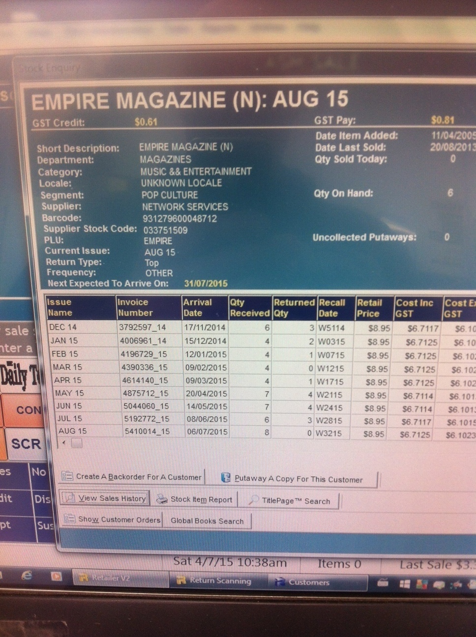 Look at this evidence of Network Services increasing supply of Empire magazine to a newsagent without any justification in the sales data. Network is owned by Bauer. Bauer representatives told the ACCC recently that they want to support newsagents and help newsagents grow their businesses. The actions from Bauer indicate something different. No wonder newsagents early return.