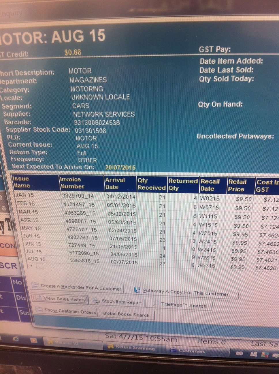 Look at this evidence of Network Services increasing supply of Motor magazine to a newsagent without any justification in the sales data. Network is owned by Bauer. Bauer representatives told the ACCC recently that they want to support newsagents and help newsagents grow their businesses. The actions from Bauer indicate something different. No wonder newsagents early return.