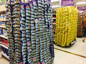 I love the aisle end display I saw at a Coles supermarket in Brisbane a few days ago. The impact is strong, unmissable. I love the single product focus on each aisle end. While I am sure Cadbury is paying for the space, the idea is one newsagents could consider.