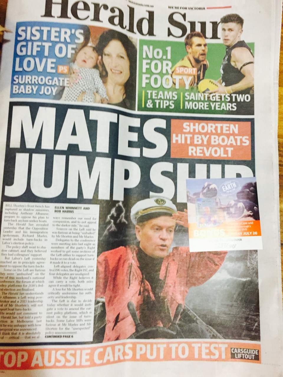 Another dumb headline coverup on the front page of the Herald Sun newspaper today. That said, I guess it is not really a headline – hey have obscured the headline for another of their anti-labor pieces. If only this newspaper would publish fair and balanced coverage of news rather than biased nonsense. Regardless, covering front page headlines with a post-it note type ad is nuts in my view.
