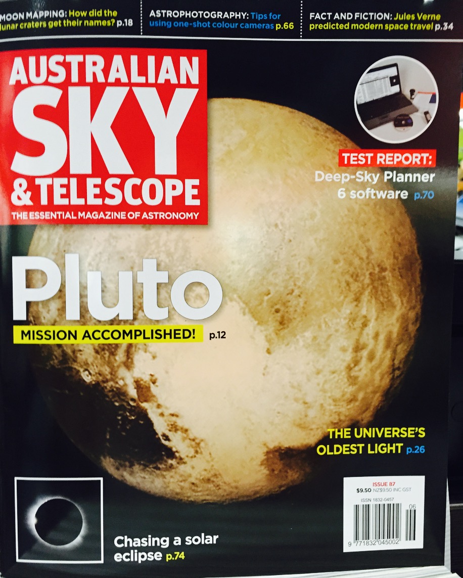 When writing about National Geographic today I neglected to call out Australian Sky & Telescope. It’s terrific to support an Aussie title at this time Pluto is in the news. We have the full face of the magazine placed so more than those seeking it will discover the title.