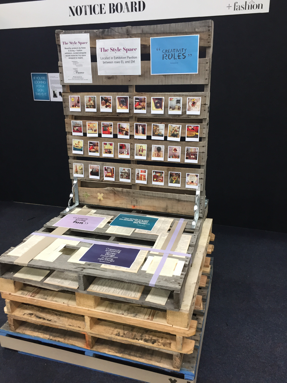 This use of pallets for creating a noticeboard and display table could work in many businesses.