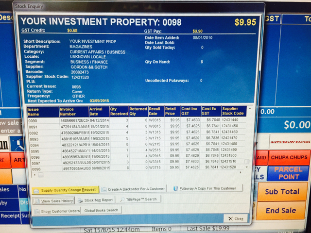 There is no justification for the increase in supply to us of Your Investment Property magazine when you look at the net sales we have achieved in recent months. This over supply is a waste of paper, time and money and we newsagents are the ones carrying the cost.