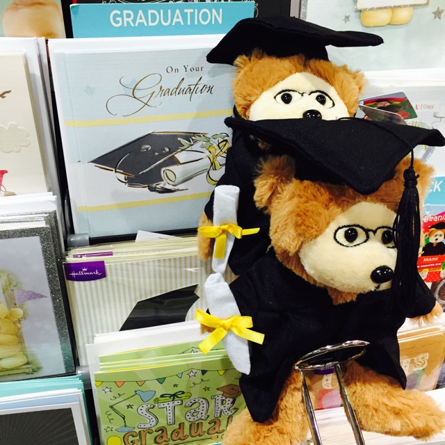 Graduation Gifts sell all through the year with people purchasing for more than what has been traditional. We now pitch graduation gifts all year round. One successful engagement is this placement of the Korimco graduation Beanie Kid with cards. It is the right size and price point to be purchased as an add-on to the card.