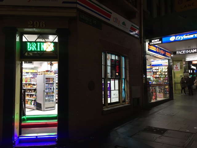 While Sydney is busy, it feels like there are too many convenience stores. Two next to each other in the photo is extraordinary.