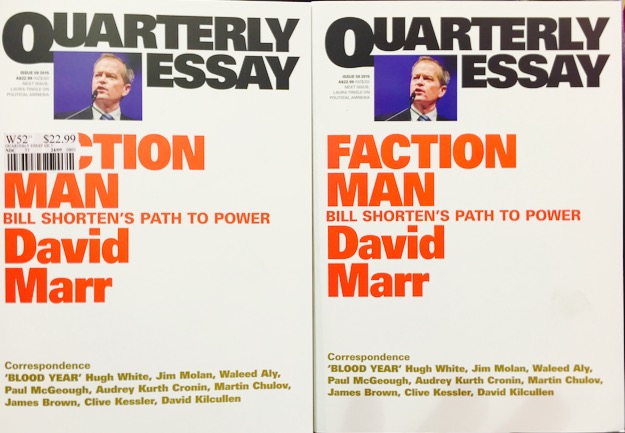 In my view the only magazines you need label are low volume monthlies. If you do label, get it right. This photo shows worst-practice labelling. The label covers the most important word on the cover of Quarterly Essay.