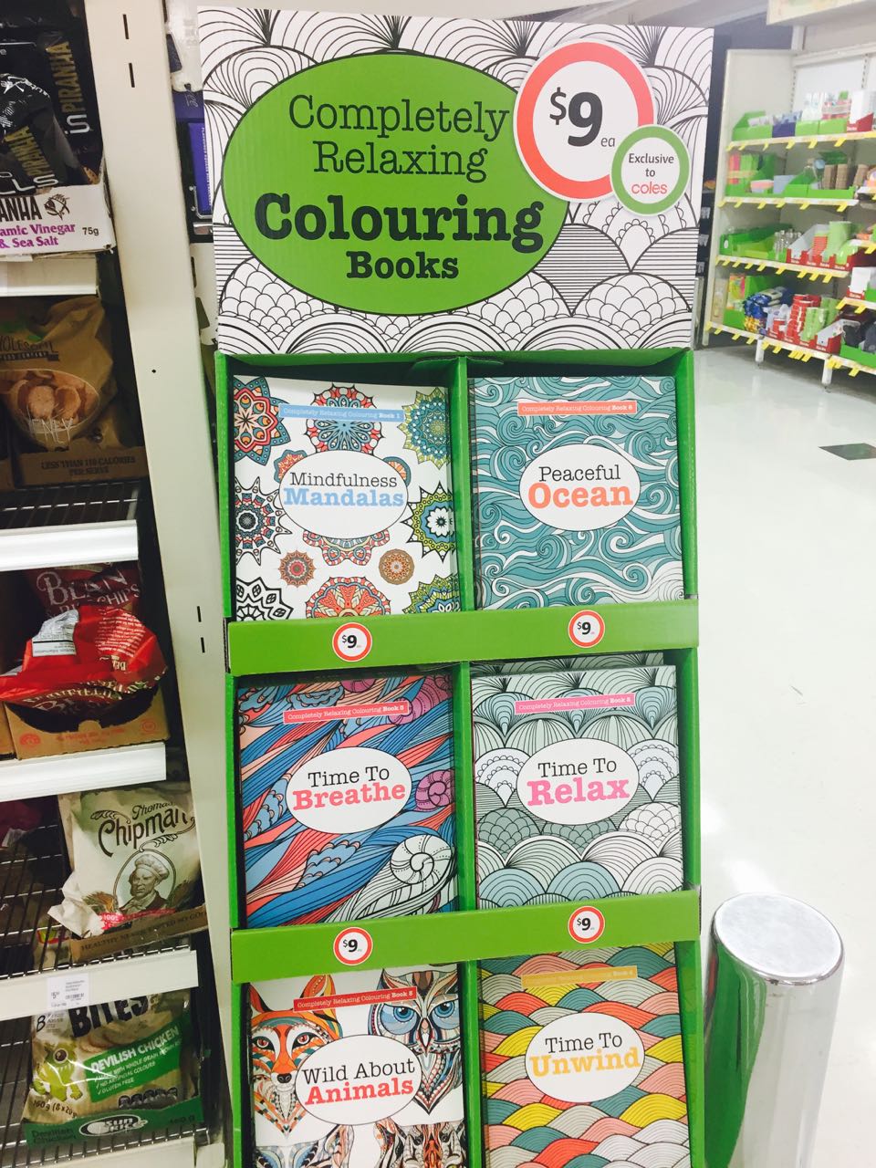 I had a good look at them last night. Based on what we have in the newsagency these books are, in my view, not worth $9.00. They appear to have been developed to meet a price point with little regard to what people into adult colouring look for. Newsagents in the adult colouring space need to be aware of what Coles is doing.
