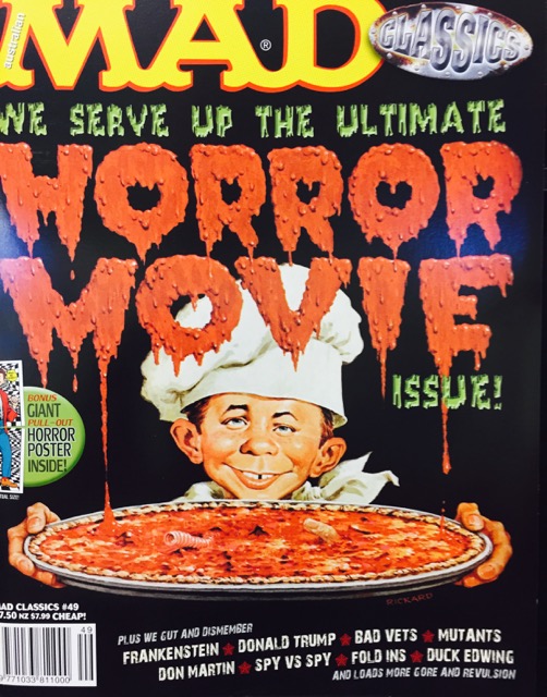 I love Mad magazine for the nostalgia and for the humor. Every issue I read gives me a laugh. The covers are appropriately seasonal or topical, providing good opportunities to promote with related product – like this issue with Halloween product. I wish it sold better though – kids today don’t know what they are missing!