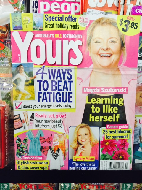 The current issue of Yours magazine is worth promoting outside the usual location for the title because of the Magda Szubanski cover. This cover stock should get people browsing and purchasing the magazine who might otherwise not even consider purchasing it. Placement next to newspapers is my suggestion – in addition to the usual location.