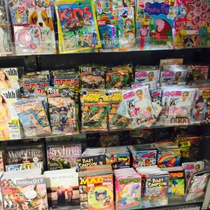 I like the kids magazine section of a local WH Smith store I saw a few days ago. It is easy to shop, presents the titles well and handles the considerable gift with purchase challenge so as to maintain order for the display. I think this display approach is one we could learn from.