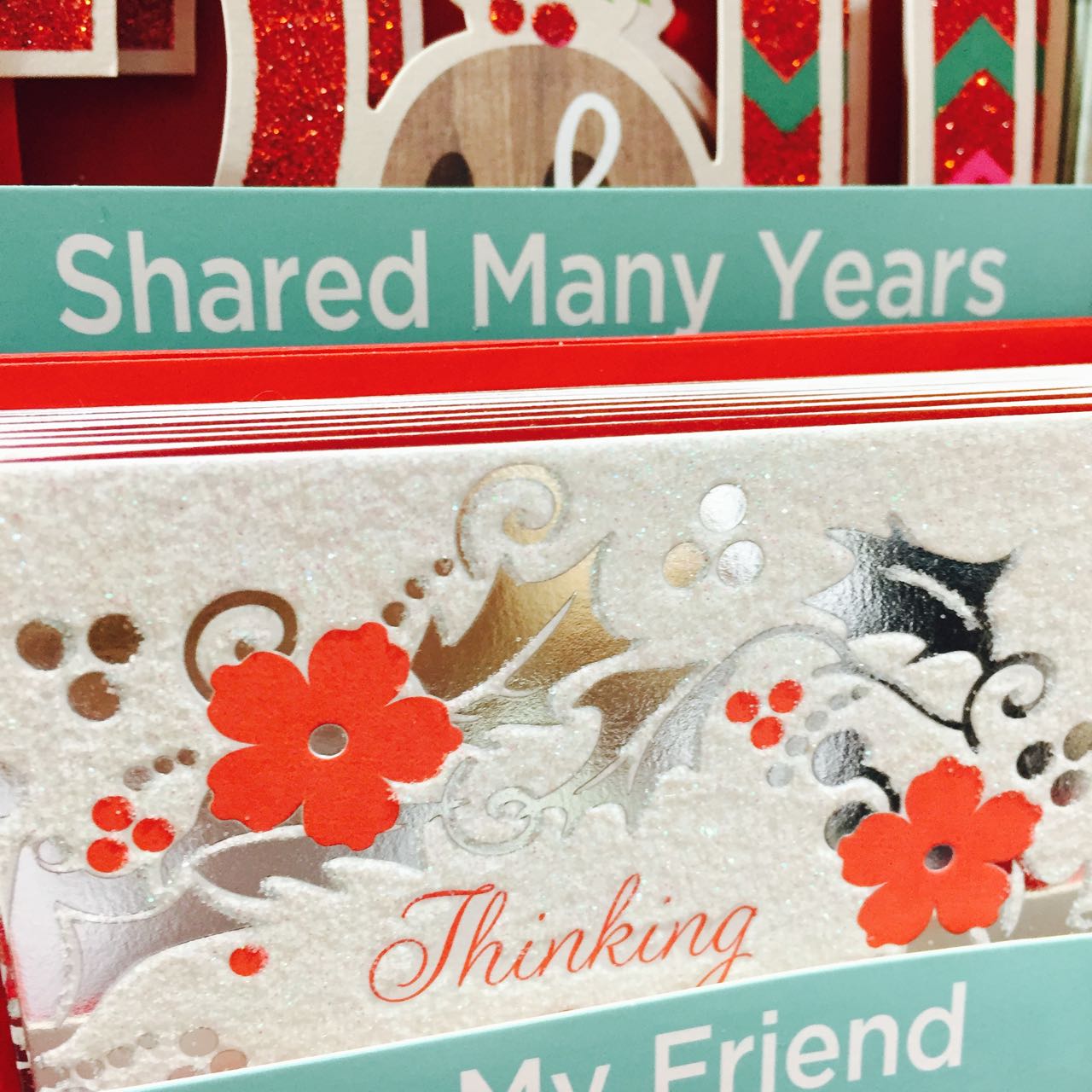 Shared Many Years is a Christmas card caption newsagents offer that you will struggle to find elsewhere. It is a caption we promote – because of the point of difference it reflects. It is another of the captions we have thoughtfully placed so people looking for a specific caption card can find it rather than buying a general Christmas card.