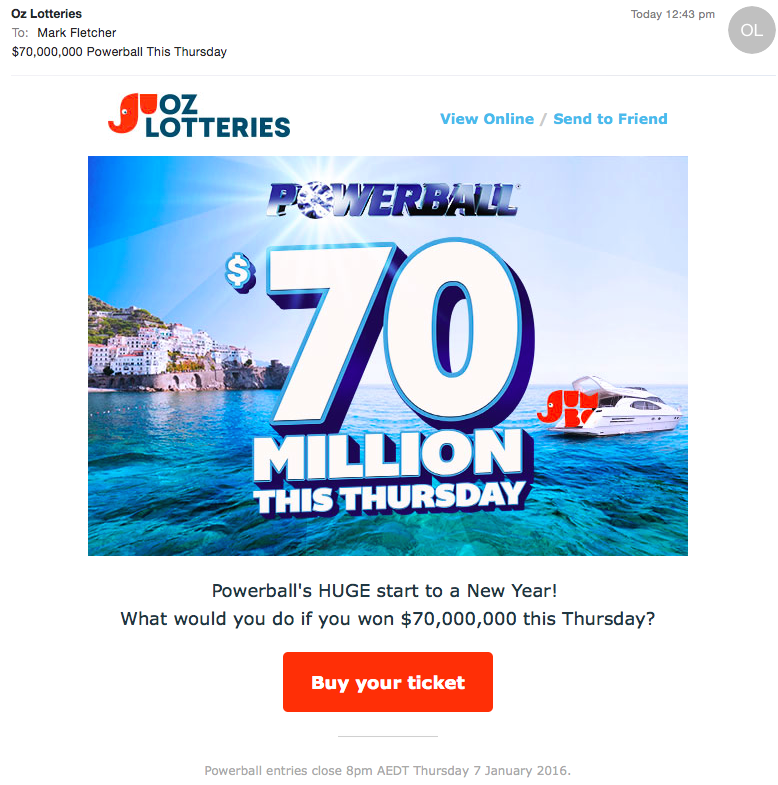 While this company is online they do not have the expense that a newsagent does who is selling Tatts product over the counter. I wonder how many newsagents have to roster on extra staff to cover the $70 Million Powerball draw. The increase in sales will no doubt generate extra commission that the retailer needs for the extra cost in wages and then don’t forget those “extra” fees that have to be paid to Tatts. At the end of the day “OzLotteries” will be making way more money than any Tatts retailer in Australia.