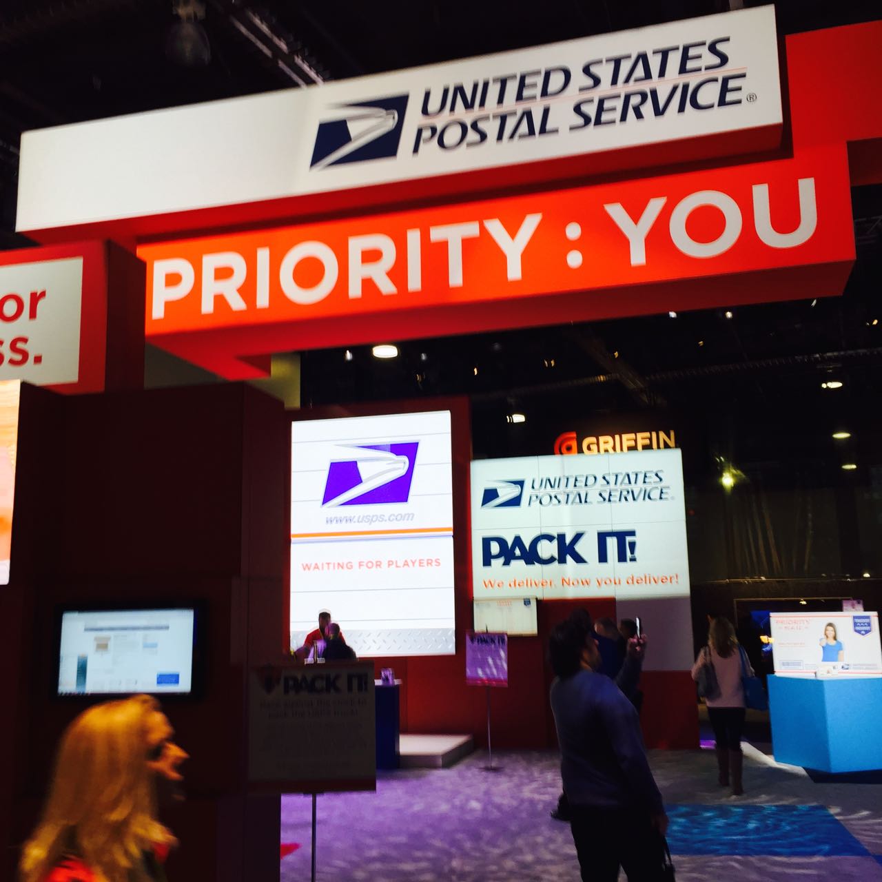Indeed, what Kodak, Polaroid and Meccano are doing is fascinating and reflective of what newsagents need to do – leverage the trust and legacy of the brand to bring shoppers to opportunities that are more relevant to today. The US Postal Service is doing this. See the photo below. Their stand this year was a terrific evolution from the stand they had at CES last year.