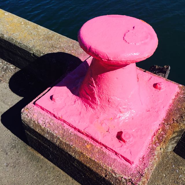 On the wharf I was drawn to the pink bollard because I did not expect to see it. I was not along. Almost everyone I saw walking down the wharf noticed it, pointed it out and took a photo. That bollard got all the love because it stood out.