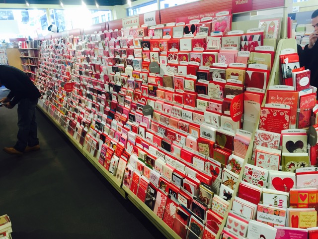 Here is around 80% of the Valentine’s Day card range I saw in a Hallmark Gold Crown store yesterday in New York.