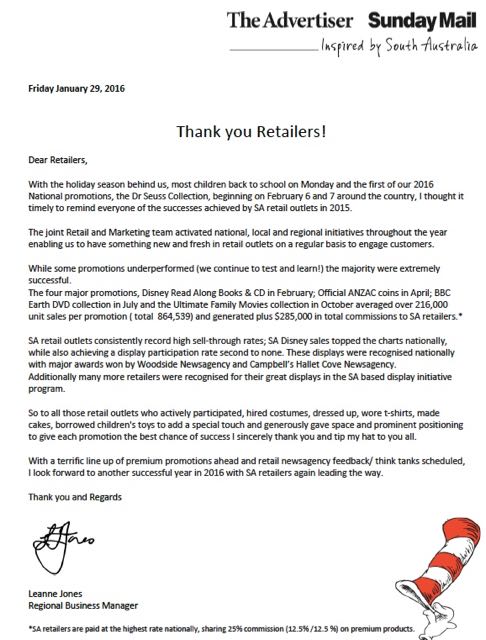 Newsagents in South Australia were sent this letter by from News Corp’s Adelaide Advertiser yesterday. It is a thank you for support for promotional activity.