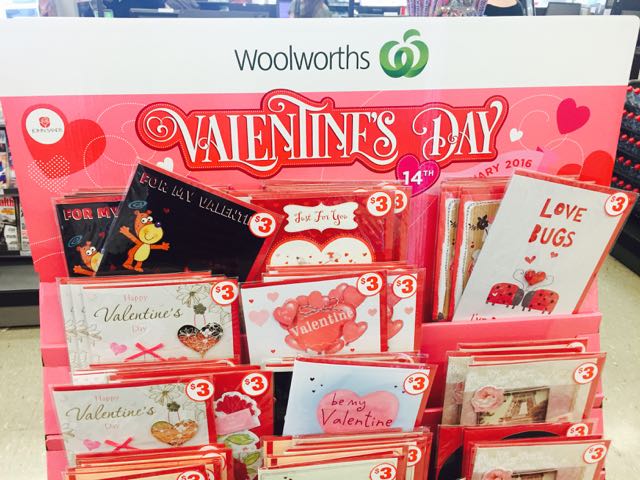The stand of $3 Valentine’s Day cards at Woolworths that I saw yesterday was in the high traffic ground floor entrance location of the Sydney CBD business while the higher priced Valentine’s Day cards were in the second floor card department. While I get that supermarkets are interested in what they say is a ‘value’ pitch, it is not, in my view, value in that the cards look and feel cheap compared to the regular priced cards.
