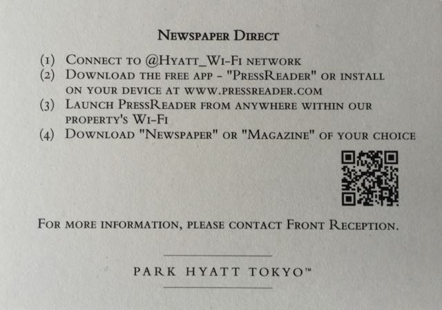 More and more hotels I check into no longer offer print newspapers delivered to the room door in the morning. The card in the image is what I was handed when I checked in to a hotel last week. The instructions on the card provide free and easy access to newspapers on my phone, tablet and laptop. The service makes sense to me as a travelling consumer while I understand the challenge it presents for those in print distribution businesses.