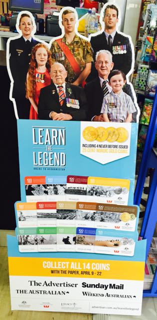 The different collateral being used by News Corp around the country for the coin promotion is interesting. The photo is from a newsagency in South Australia. I like this free standing unit. It would work well in a shopping centre. The challenge for this display unit, however, is the cost of the floor space for what is a low margin campaign.