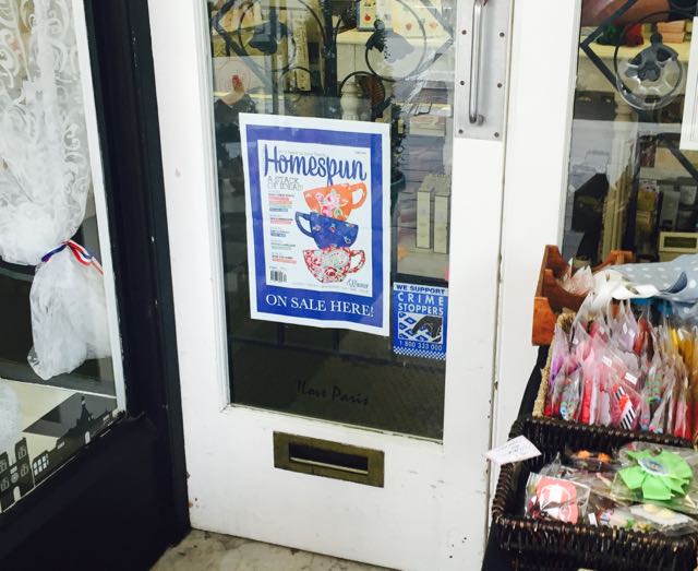 A few doors away from a newsagency and supermarket with Homespun magazine is this gift shop also offering the title.