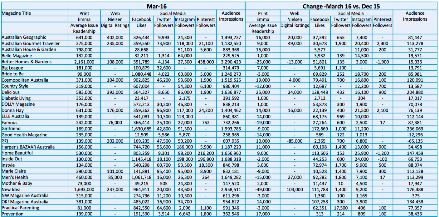 On their website, the MPA has released a report that speaks to the value of the magazine medium. It covers masthead engagement by print, digital and social media. It is invaluable for those who want to understand key magazine brands as their engagement can be leveraged by us.