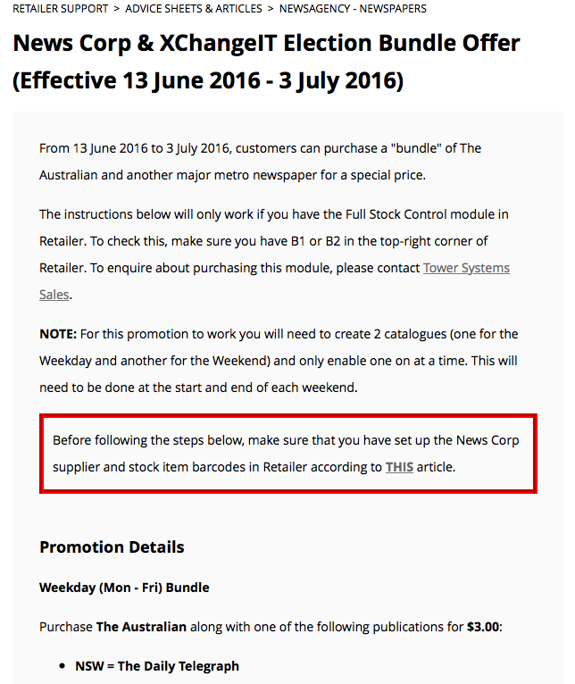 To serve the need of newsagents in any state or territory, my newsagency software company Tower Systems published advice Sunday and Monday.