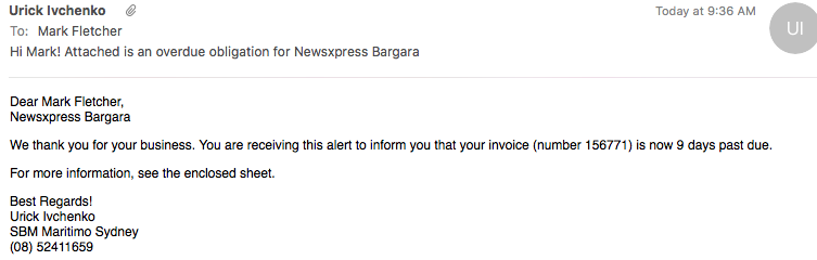 Here is another example of the start of a ransomware attempt. This email comes in and the immediate reaction is this isn’t for me. Being a suspicious type I don;t click on it. Plenty of newsagents are and this is why they are being locked out of their computers.