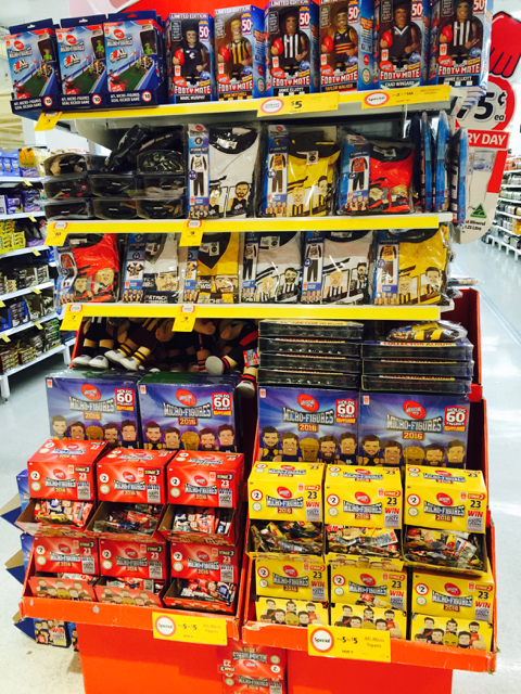 In ym own case, AFL products have done well – the Hallmark wrist bands and team song buttons and cards. Plus the Korimco AFL range, especially the team mascots. So I suspect overall interest in AFL licenced product is strong and that challenges relate either to the supply money (the collector cards) or the product (the micro figures).