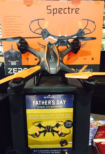 We have a Spectre drone unpacked and on display at the counter to shop off the prize one of our Father’s Day card customers will win next weekend.