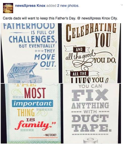 Now more than at any time in the history of the newsagency channel we need to be promoting Father’s Day cards outside the newsagency.