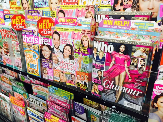 We have collateral from Pacific Magazines placed in prime position to leverage their $10,000 competition that is currently running in the newsagency. People understand cash, they respond to the opportunity. I like the fold-out backing cards for the promo.