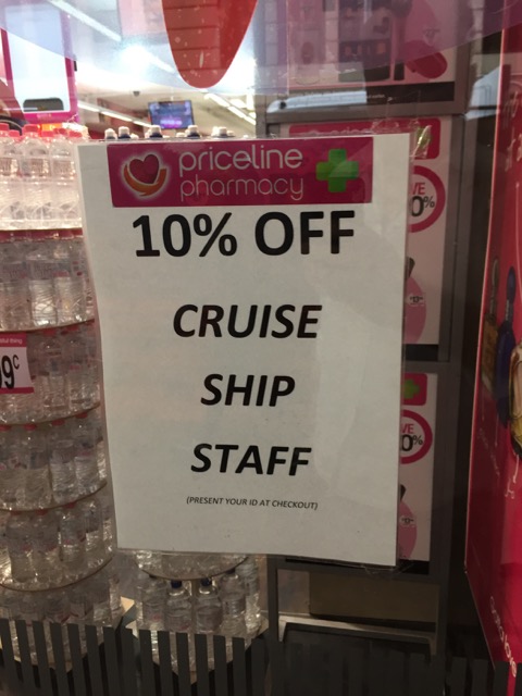 This sign in the window of a Priceline on George Street Sydney is interesting in that a national chain would only do something like this if it worked. It looks like an opportunity for newsagents in areas where cruise ships dock or tour groups visit to try if not being done already. You can leverage the opportunity with discount vouchers or similar as the traditional loyalty offer would not work with these types of shoppers.