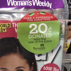 It was good to see this sticker on a pack containing New Zealand Woman’s Day last week in New Zealand indicating the purchase of the pack raises funds for a local charity. This type of charity connection is a strong driver of boxed Christmas card purchases in newsagencies. It is a key factor in purchase decisions.