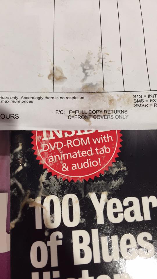 One newsagent received a magazine bundle with part of a banana crushed on the outside of the bundle. In the middle of bundle was the rest of the banana. Sticky and messy.