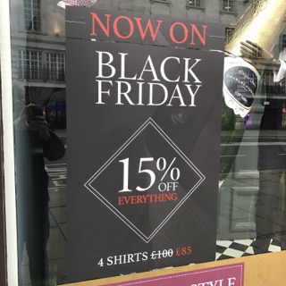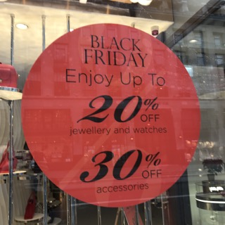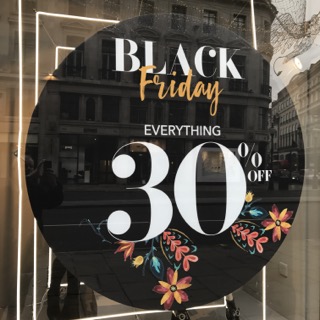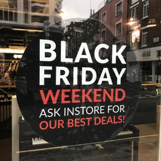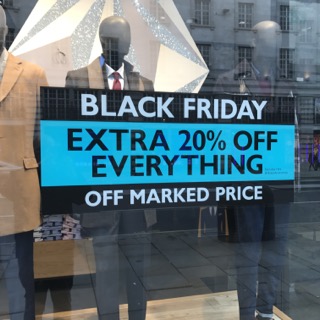 In the UK ten days ago I was surprised at the extent of Black Friday. Here is a gallery of window signs, demonstrating the extent of retailer engagement in the season. I took all these photos in a short period the Saturday and Sunday following Black Friday.