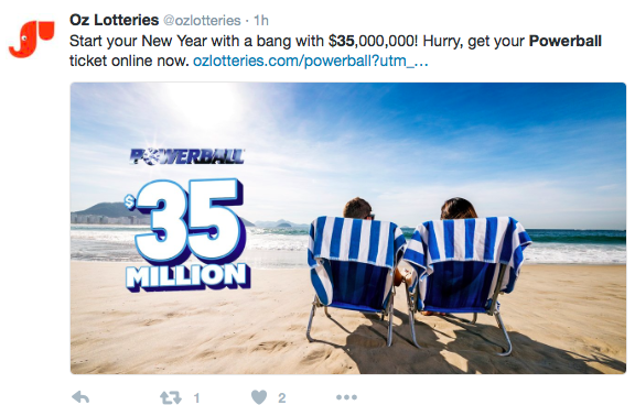 OzLotteries has been busy this week promoting the $35M Powerball jackpot. This was on twitter yesterday: