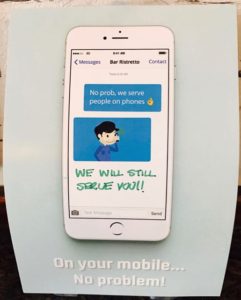 I was thrilled to see this sign in my local coffee shop on Monday this week. I am often on the phone when there ordering coffee. It works, I don’t disrespect them and they don’t disrespect me.