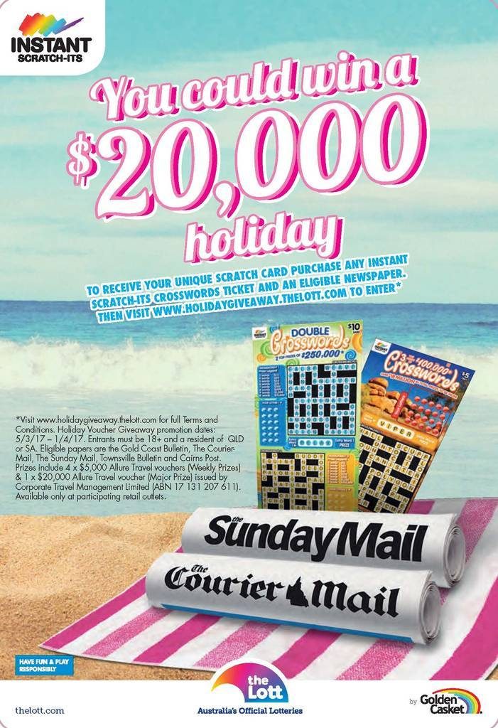 Customers must purchase any Crosswords ticket and an eligible News Corp Newspaper to receive a promotional Scratch Card. The Scratch Card directs customers to holidaygiveaway.thelott.com to enter their details into the draw.