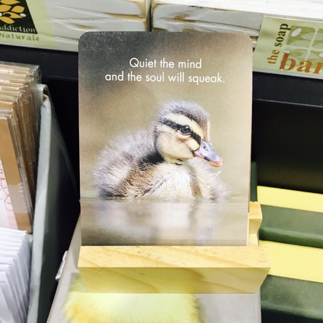 Take the image of the duck with this post. The message, Quiet the mind and the soul will squeak, is simple, inspiring, optimistic.