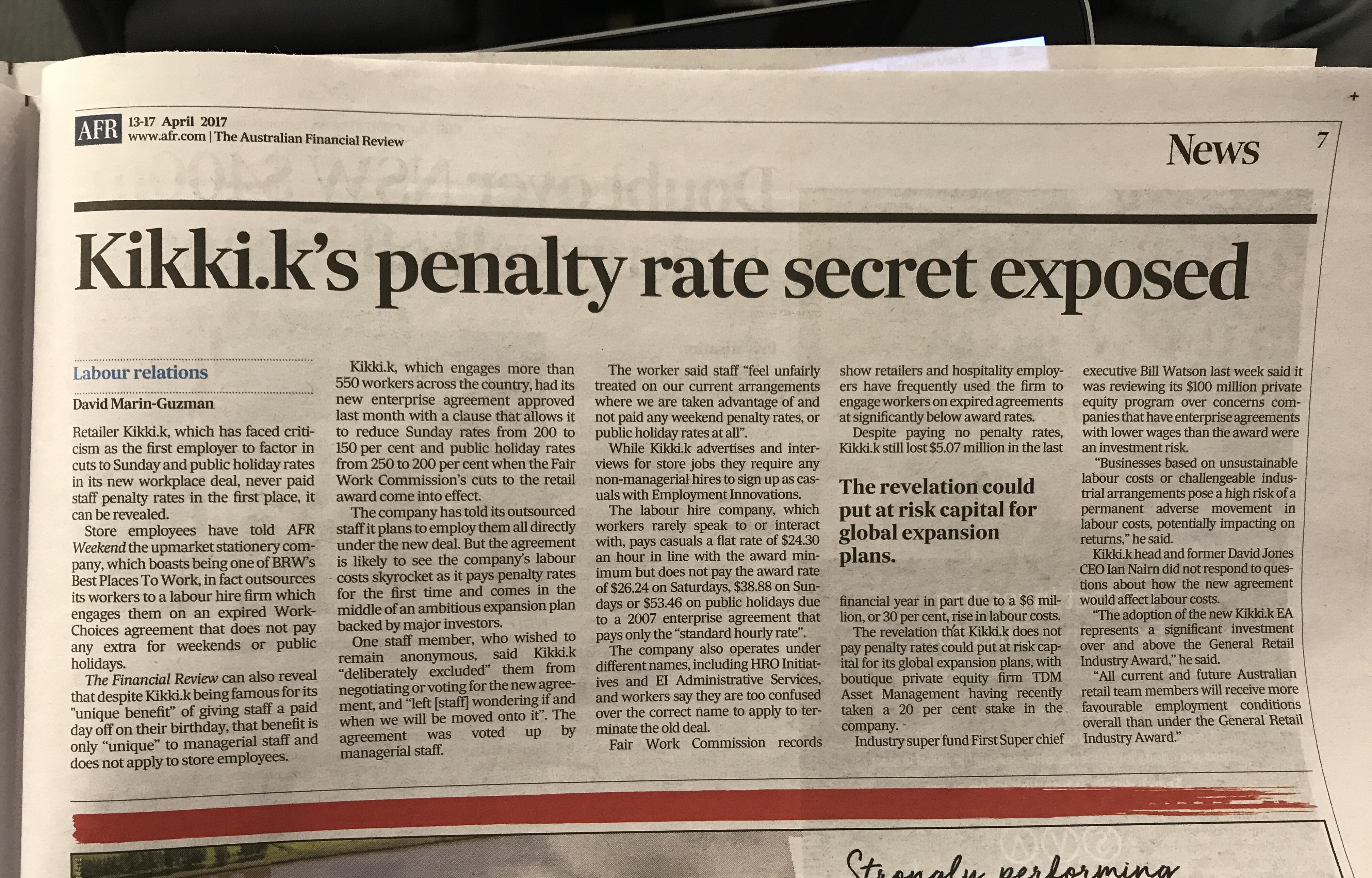 Thursdays SMH Business Section an Article on United (Petrol Station fame) have purchased the PIE Face franchise stores. United’s dramas with the Fair Work Commission was briefly mentioned. PIE face could help extend there employment model.