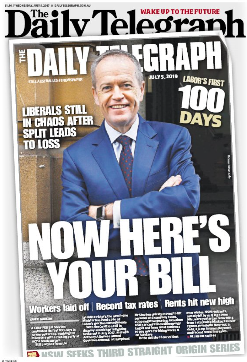 It isn’t about the Tele being anti-Shorten or anti-ALP, it is about it using the front page for what has become known as “fake news”.