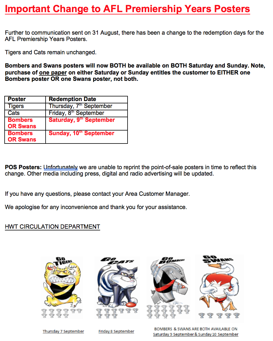 News Corp. announces changes to AFL finals posters ·September 7, 2017 ·Mark Fletcher ·0 Comments 1 likes Newspapers Leave a Reply Cancel replyYour email address will not be published. Required fields are marked *Name * Email * Website Enter Code * Captcha Comment * Δ Post navigation Next ArticlePrevious Article