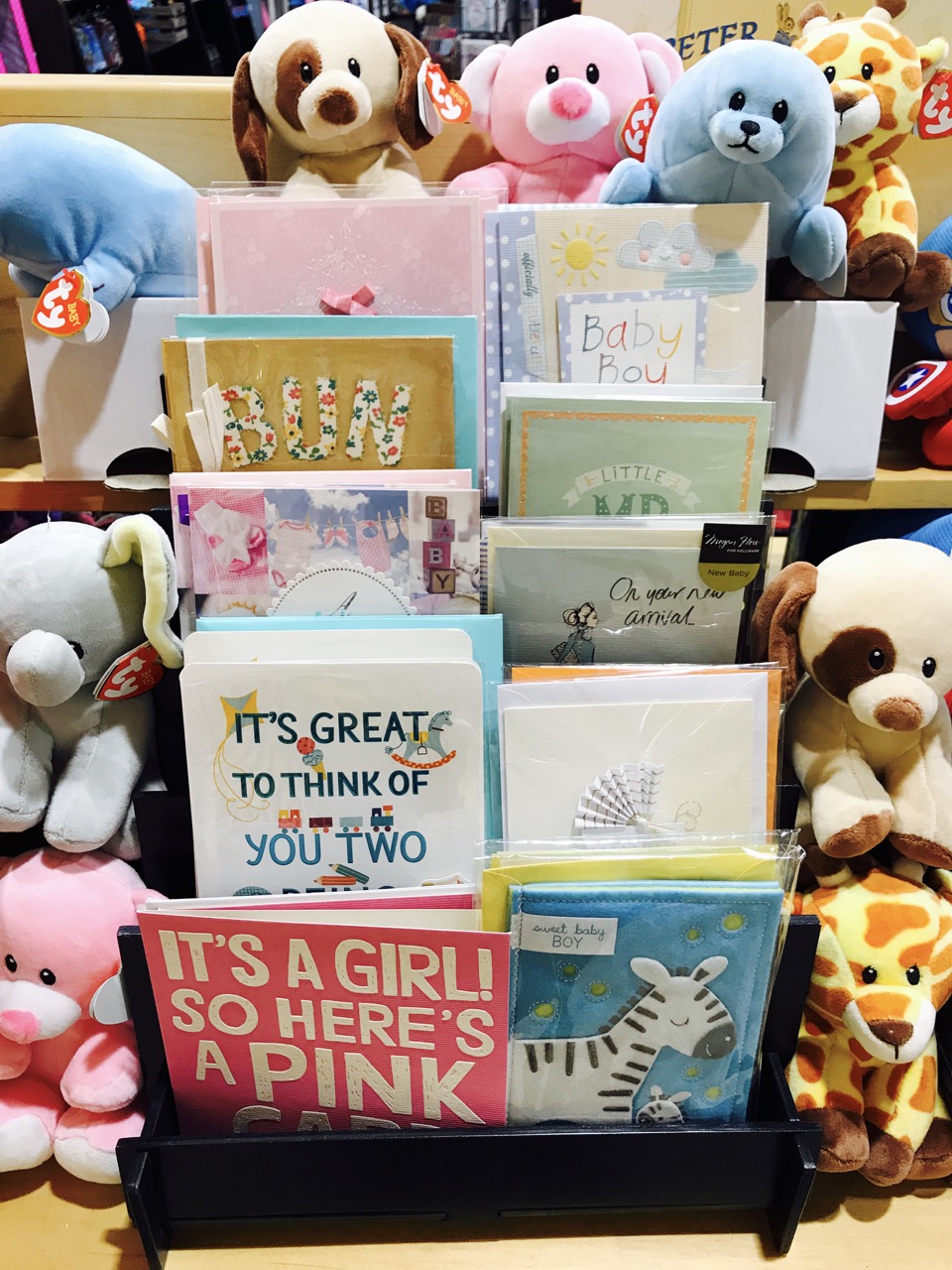 But what about a display of gifts with sympathy cards, new home cards or thank you cards. In these three we have opportunities to source gifts to support the placement of a selection of cards from each caption outside the gift department.