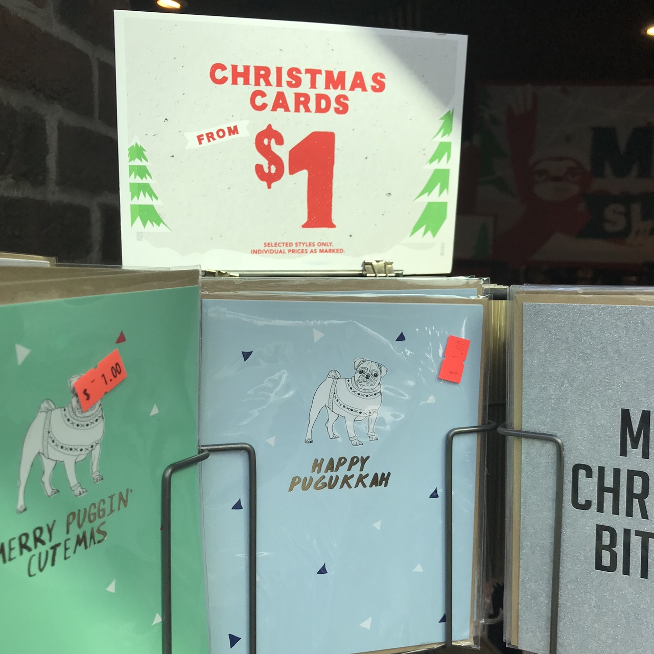 Typo has a good range of $1.00 Christmas cards, pitched different to the cheap Christmas cards you see elsewhere.