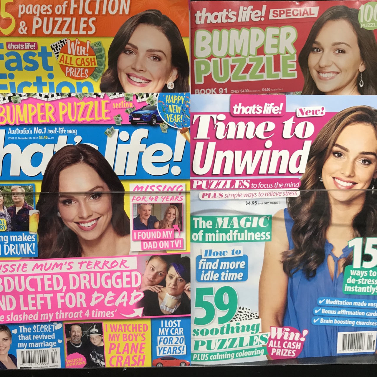Whenever we get magazine titles connected to a single masthead brand we place them together, as we have done with these That’s Life related titles in-store. This proximity placement is the best way to leverage the masthead connection and thereby increase the opportunity of impulse purchase of the one-shots especially.