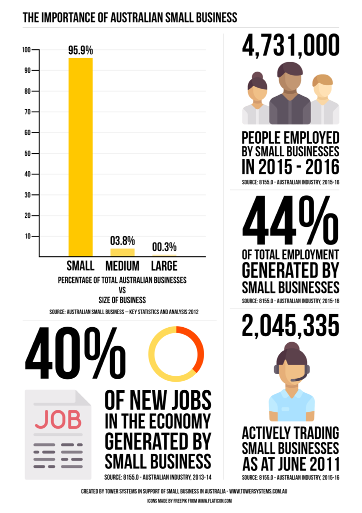 Small business matters to the Australian economy and local communities and families ·February 13, 2018 ·Mark Fletcher ·1 Comment I am proud of this infographic created by the team at my POS software company pitching accurate data on the value of small businesses in Australia. 15 likes Social responsibility Join the discussion Colin, Malvern SA February 13, 2018 Great to see the get up and go attitude of Aussies. If only more could persuaded to stay the course. 60% of small businesses fail to employ anyone and 75% whither and fail to execute a successor plan. Greater support needed at every level. 0 likes Leave a Reply Cancel replyYour email address will not be published. Required fields are marked *Name * Email * Website Enter Code * Captcha Comment * Δ Post navigation Next ArticlePrevious Article