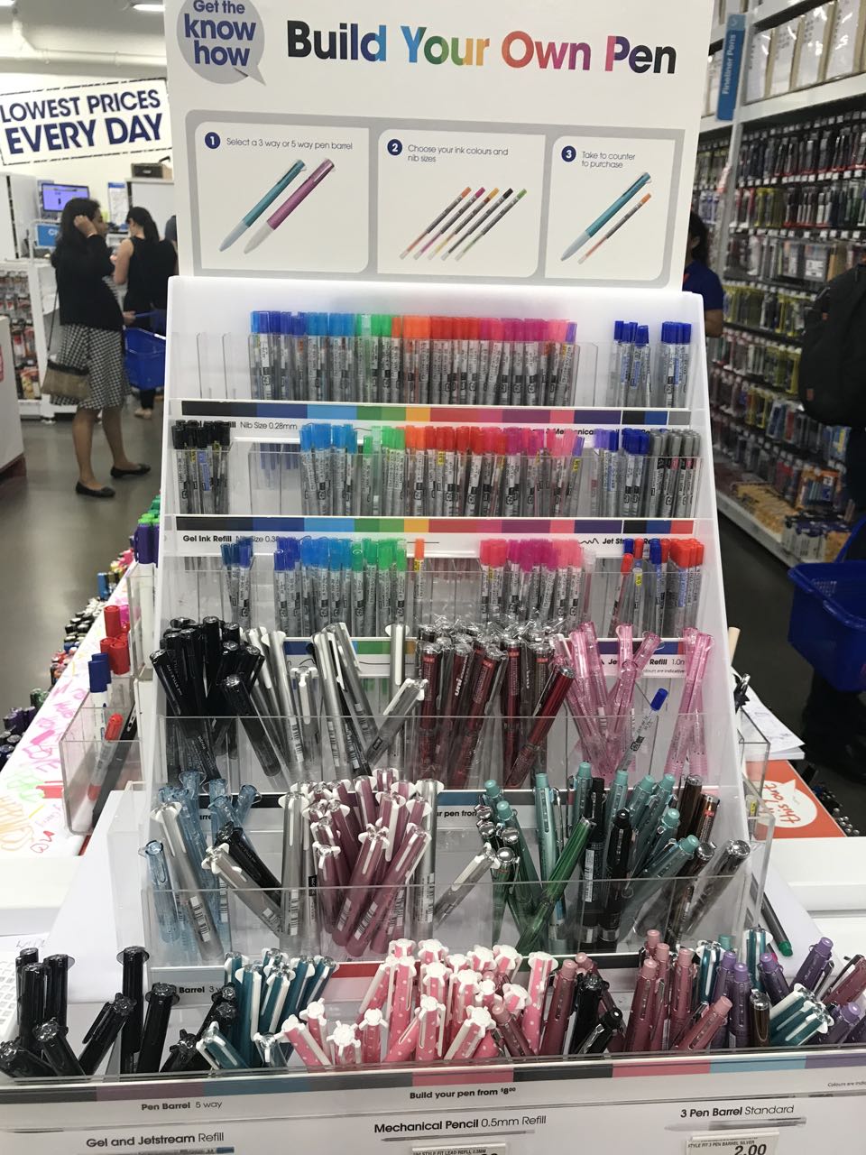 Officeworks is pitching deconstructed pens in this build your own pen display.