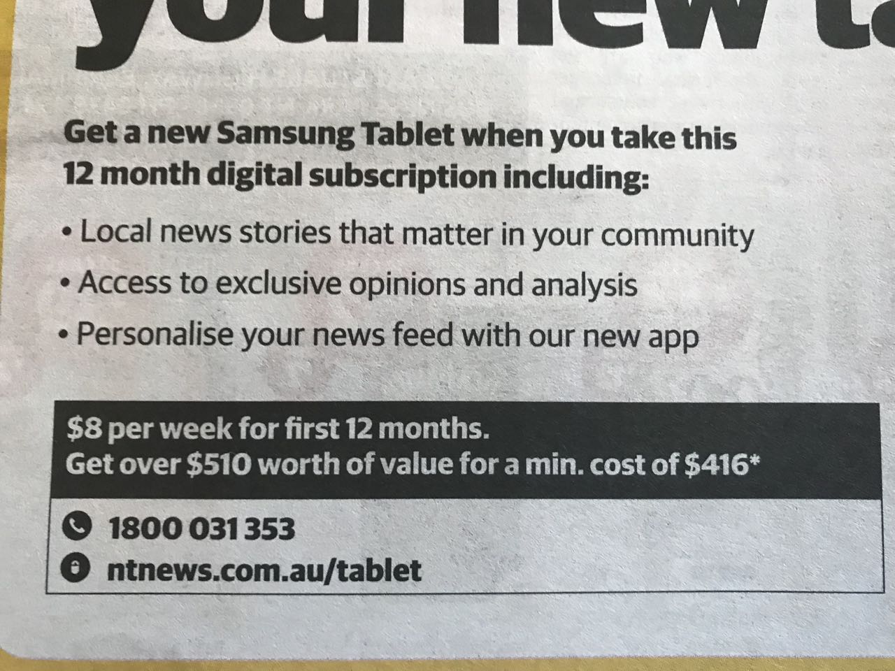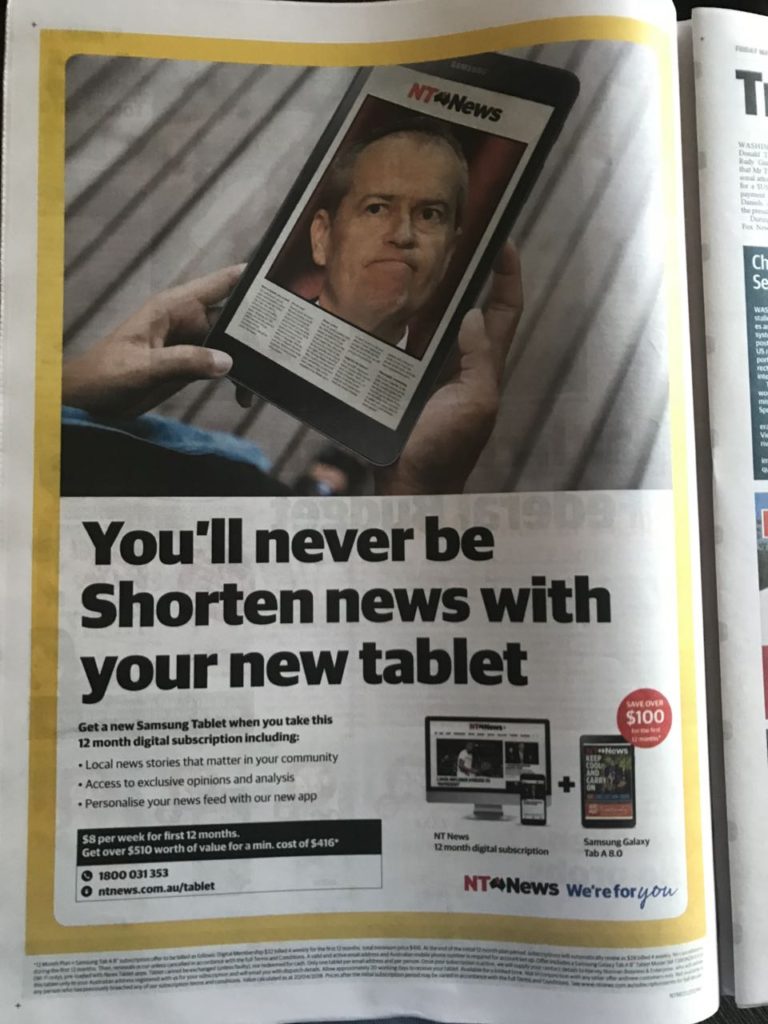 Check out this as in the NT News, which I saw when I was in Darwin recently.